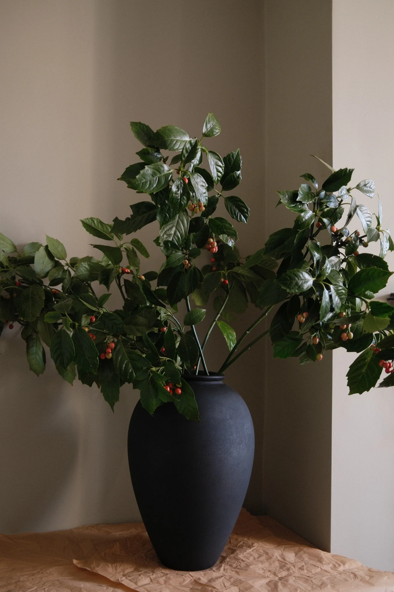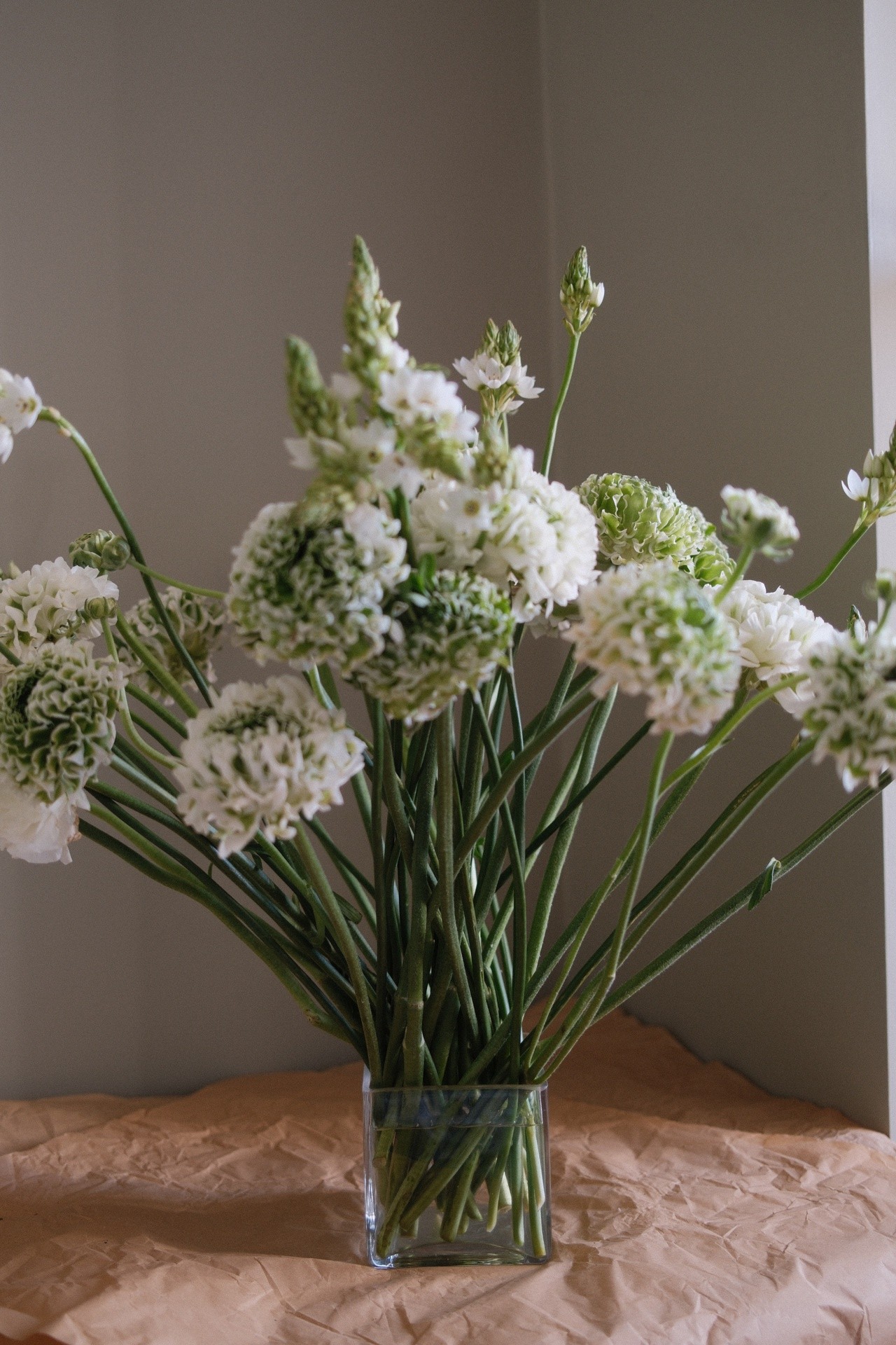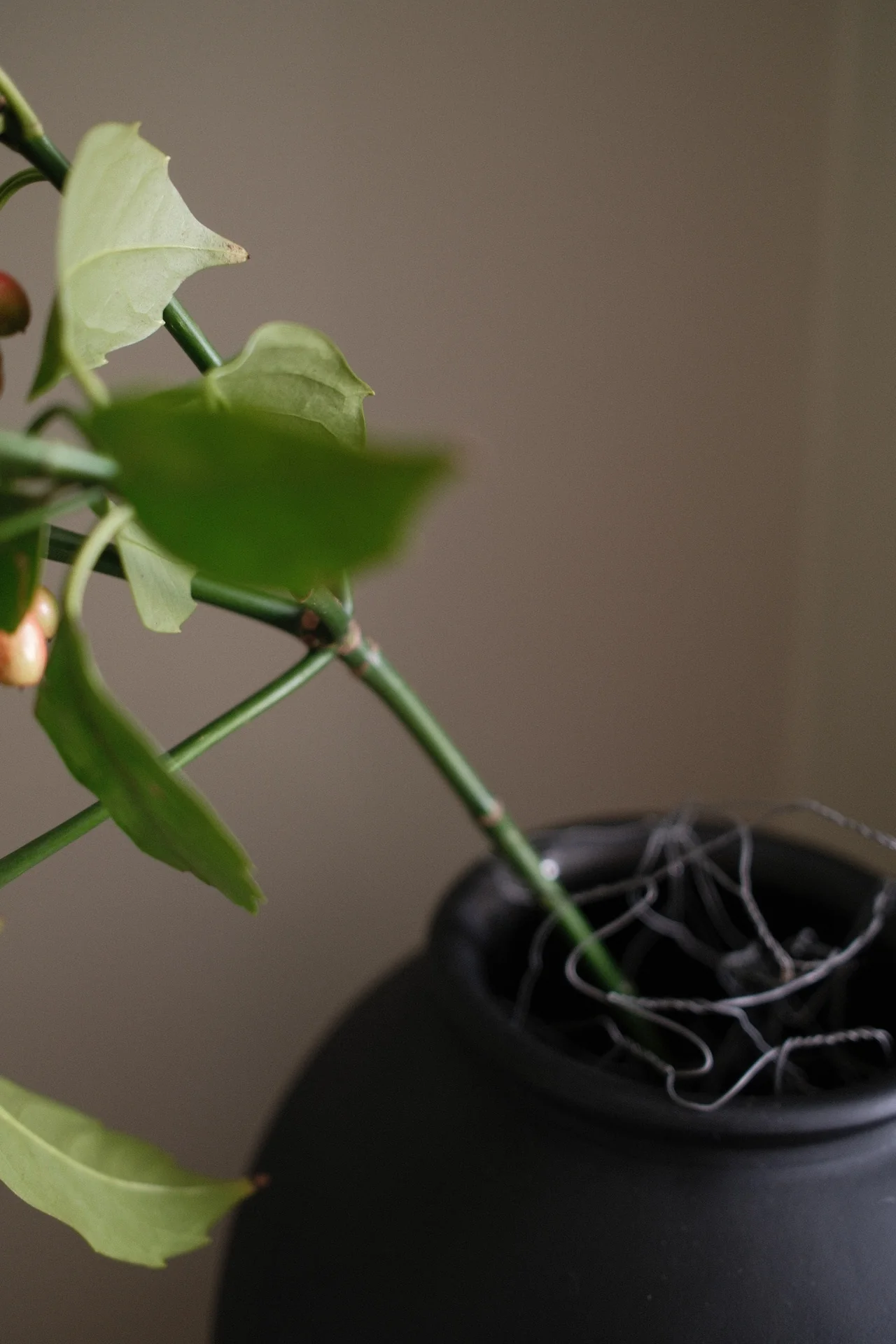 Choosing a medium height vase or coupe will accommodate more stems and prevent them from feeling overcrowded. If you feel like leaning into the overcrowded design, filling a vase to the brim with stems is a great way create natural support. A small amount of chicken wire can also help to add more support if the stems are too loose or need holding in place.