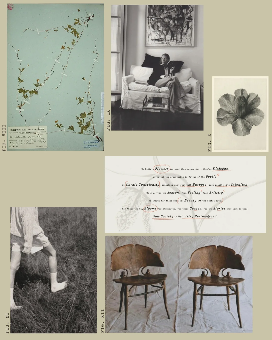 Fig. VIII Museum Batanicum Reference - Fig. IX Tonne Goodman by Wendy Goodman - Fig. X Karl Blossfeldt - Fig XI. Source Unknown - Fig. XII Claude Lalanne - Ginkgo Chairs.